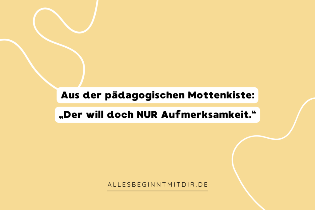 „Der will doch nur Aufmerksamkeit.“ — Vielleicht (leider) einer DER am häufigsten gesagten Sätze im professionellen pädagogischen Alltag. Und tatsächlich einer DER Sätze, bei denen ich ganz tief Luft holen muss … Aber ein Schritt nach dem anderen.